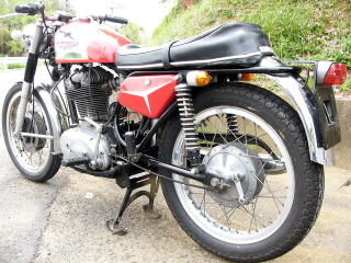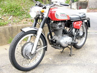 「デスモ」と略称で呼ばれます、ドゥカティの現行機種は全てデスモドロミック機構を搭載しています。 世界中を探しても2輪車4輪車を問わず、市販車にデスモドロミック機構を採用しているのはドゥカティだけです、 ドゥカティのアイデンティティともいえるデスモドロミック機構ですが、このデスモドロミック機構を採用した初めてのバイクは1956年の 125ccGP用レーサーでした。 市販車への採用は1968年マークIIIデスモシリーズが最初です、同じ 350マークIIIシリーズでも、デスモとノンデスモのエンジンが存在し、較べるまでもなくデスモのほうが人気があります。 このバイクはデスモヘッドを持つ最初のドゥカティ市販車です。1969年式ですが、驚くことにノンレストアの車両です、フルレストアも価値がありますが稀少性でいえば、この年式でノンレストアの車両を探すのは困難であろうと思われます。 バイク各部はほとんど全部がオリジナルのままですが、3点だけ変更してある部分があります。 キャブはアマルが装着してあります、このキャブも調子が良いです、オリジナルはデロルトSS−1、29φのリビルト済の部品を保管してあります。 変更箇所の2点めはリムです、オリジナルの鉄リムからアルミ製リムに交換してあります、オリジナルのリムはありません。 キーはメインスイッチのキーはオリジナルではありません、複製されたキーになっています、ハンドルロックキーはオリジナルです。 バッテリーは消耗品なのでオリジナルではありませんが現在は外してあります。 外観は年式を考えると大変保存状態は良いです、ところどころに少し錆が出ていますが表面部だけのようです。フューエルタンクの中はきれいで錆は見当たりませんでした。 右足のシフトチェンジは前に踏み込み1速、かかとで踏み込み2〜5速のタイプで靴のつま先が痛まないものです。 タコメーターはレッドゾーンの赤い目盛りが8,500回転についています このバイクは25年前にアメリカから輸入したものを手に入れたそうです、国内で登録をしてありますで、車検切れとはいっても、5万円程度の車検費用をみておけばよいそうです、新オーナーさんが希望されるなら車検業者を紹介してくれるそうです。(車検費用は新オーナーさんの負担です、他には名義変更費用だけで全てです) しばらく保管状態になっていて、興味のある方がいればお譲りしたいとの事で取材してまいりました。 取材時は保管状態の為、エンジン始動はしていませんがオーナーさんは当サイトの常連さんで、ご自分で整備をしている人です。 その車両管理には定評がありますから車両状態については問題ありません、車検さえとれば、そのまま乗り出せるコンディションです。 車両は千葉県にあります 個人の為消費税はかかりません。 以上の記事内容は、オーナーさんのコメントをもとに作成したものです。 整備履歴、修復暦などに関しては、バイク見聞録で裏づけを取ったものではありません。 SOLDOUT |