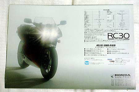 | 1987年から、室内保管されているRC30が出品されました オーナーさんは発売時に購入希望の予約を入れましたが、1000台、限定販売の為 希望者が大勢居た為に抽選となり、残念ながら購入できませんでした、 その後、新車を探しつづけて、とうとう新車で保管していた人を見つけて手に入れる事が出来ました。 苦労の末に手に入れたRC30を大事に、ガレージ奥の居間に上げて、ガラスケースに入れてある のが下の一枚目の写真です。 オーナーさんが、購入した金額は200万円でした、そして、今回、増えた車両を整理する為に その価値の分かる人に譲りたいとの事で出品されました。 書類は、完成検査証明書(勿論、期限切れ)と、取り扱い説明書があります。 別売品のHRCキット(未使用新品 約30万円)20万円で譲ります。 以下が、当時のプレスリリースです。 1987年7月24日 高度な技術や素材を広範にわたり採用したハイグレードな スーパースポーツバイク「ホンダ・VFR750R」を発売 本田技研工業(株)は、世界耐久選手権シリーズで、 1985〜6年度の2年連続チャンピオンを獲得したレースマシン「ホンダ・RVF750」の 高度な技術をもとに開発し、チタン合金などの高価な軽量素材を多用したハイグレードな スーパースポーツバイク「ホンダ・VFR750R」を、8月31日より発売する。